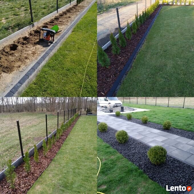 - montaż obrzeży plastikowych, betonowych z kostki grantowej