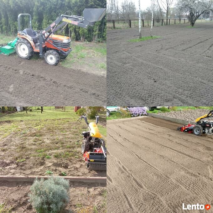 - przygotowanie gleby pod wysiew lub trawy z rolki