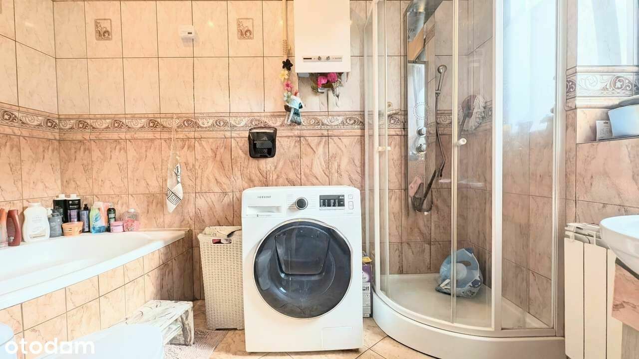- ogrzewanie z własnego pieca C.O. z podajnikiem