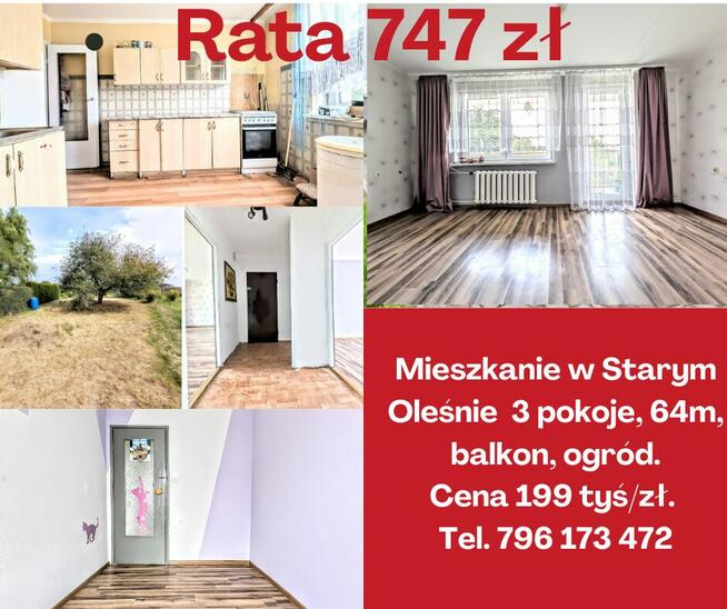Okazja – mieszkanie w Starym Oleśnie a parterze z własnym ogródkiem Na sprzedaż mieszkanie o powierzchni 64 m², ...